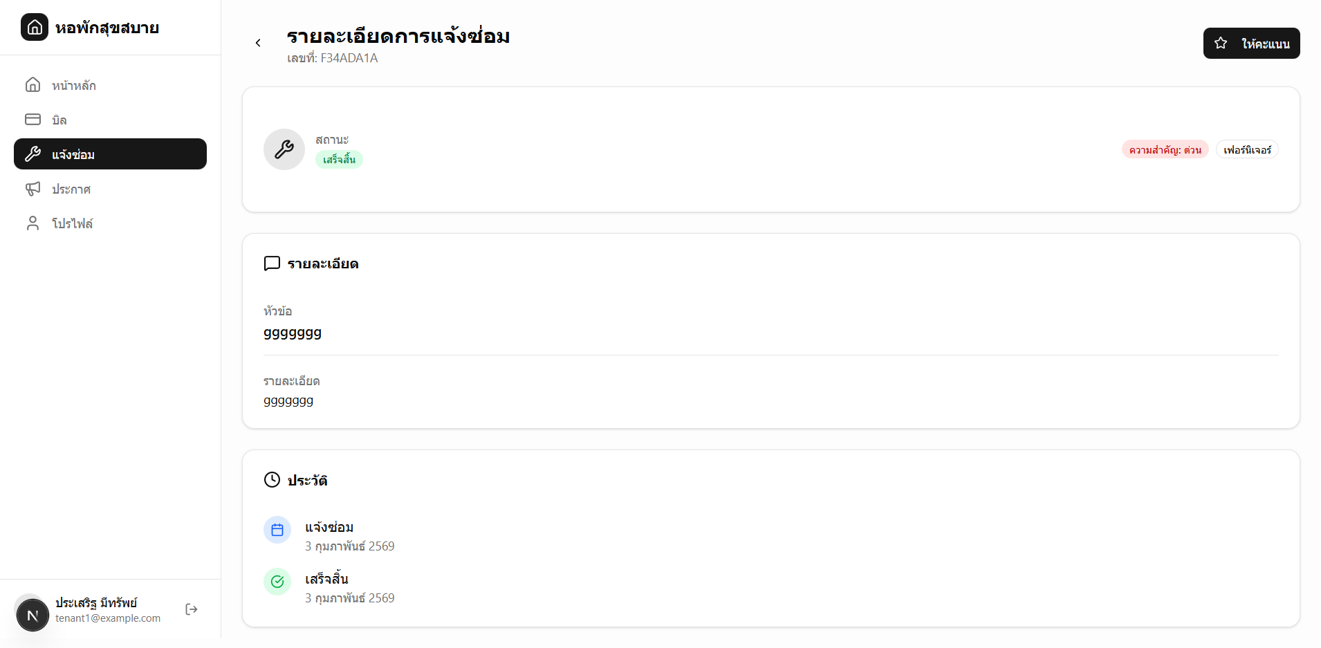 - 🔧 แจ้งซ่อมออนไลน์ - ผู้เช่าแจ้งซ่อม มอบหมายงาน ติดตามสถานะ